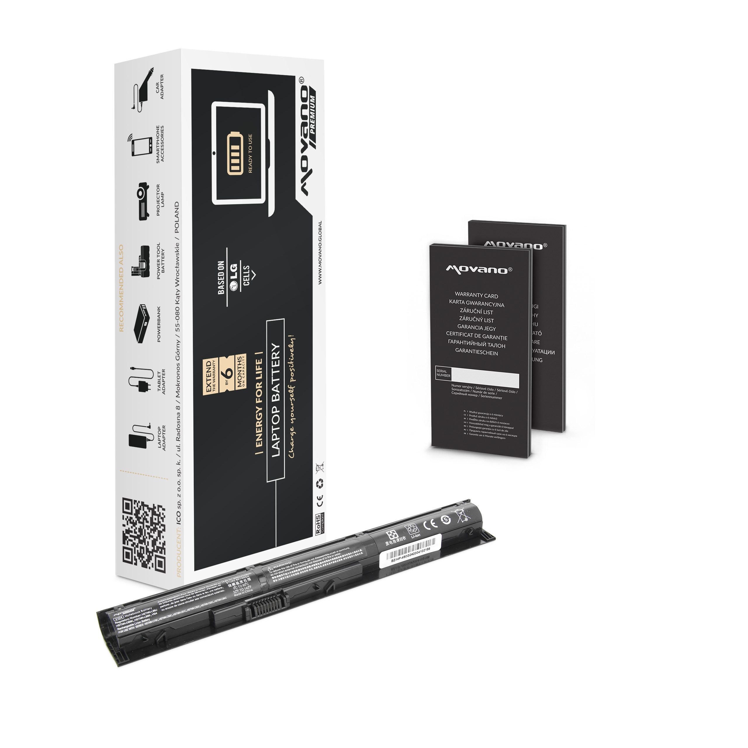 A bateria foi equipada com células de íons de lítio da marca LG. Isto dá-nos a certeza da capacidade que declaramos. A marca Movano Premium tem uma qualidade comparável à original, mas a um preço muito mais atrativo. A utilização de componentes de alta qualidade garantem a durabilidade e alto desempenho, bem como uma diminuição mais lenta da capacidade nominal em comparação com outras alternativas mais baratas. Graças a isso, você poderá desfrutar do funcionamento ininterrupto do seu portátil por muitas horas.